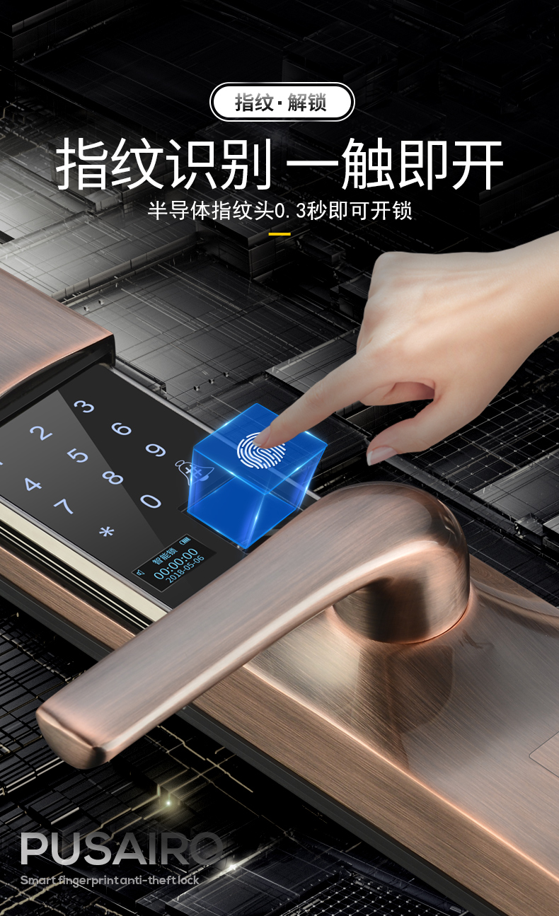 鲁础营乡滑盖指纹锁家用防盗门